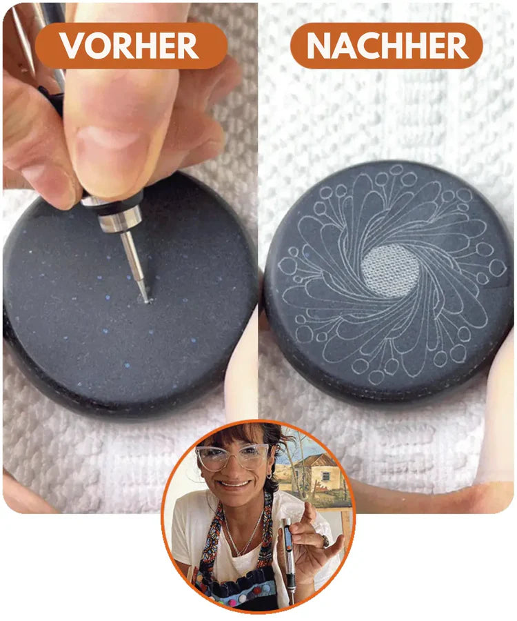 Beweeg de graveerpen gelijkmatig over het oppervlak met lichte druk. Druk niet te hard; het gereedschap doet zijn werk vanzelf.